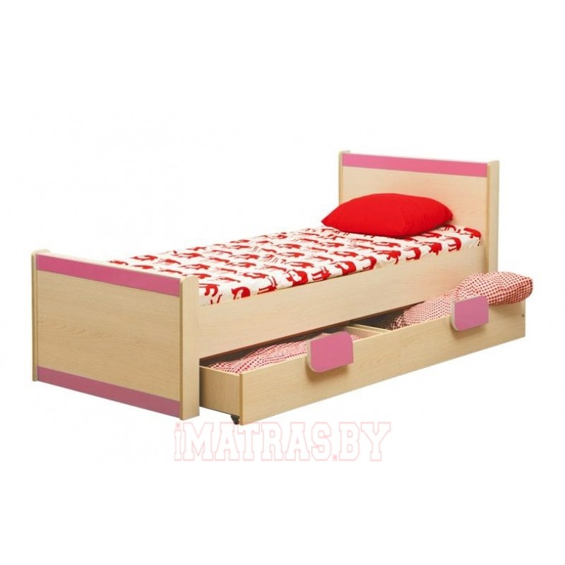Кровать односпальная Лайф-4 с выдвижным ящиком представлена в двух цветовых решениях: розовый и голубой.