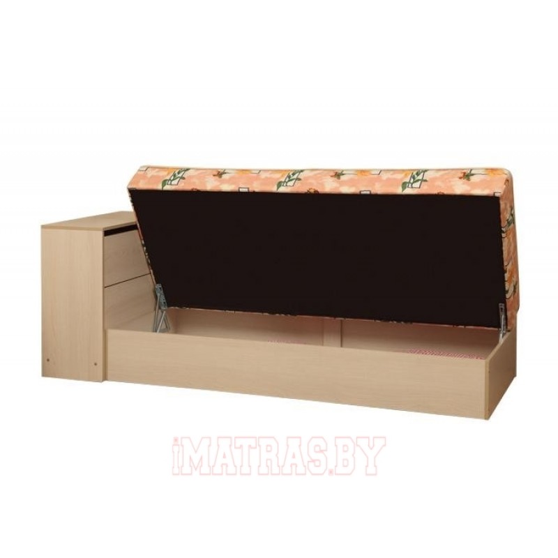 Более дорогая версия подростковой кровати Тони-11 отличается от «модели-напарника» Тони-10 наличием прикроватного блока, который заменил собой спинку изголовья. По своей сути и назначению это дополнительный ящик с откидной дверцей для постельного белья или других вещей из текстиля. Основной отсек для подушек, одеяла, накидок расположен под пружинным матрасом, оборудованным механизмом подъёма. Места для удобного хранения вещей никогда не бывают лишними, поскольку они помогают поддерживать порядок в комнате. Кровать Тони-11 полностью соответствует своему основному назначению. Спать на ней удобно и приятно – просторное спальное место 80х190 см гарантирует комфортный сон.